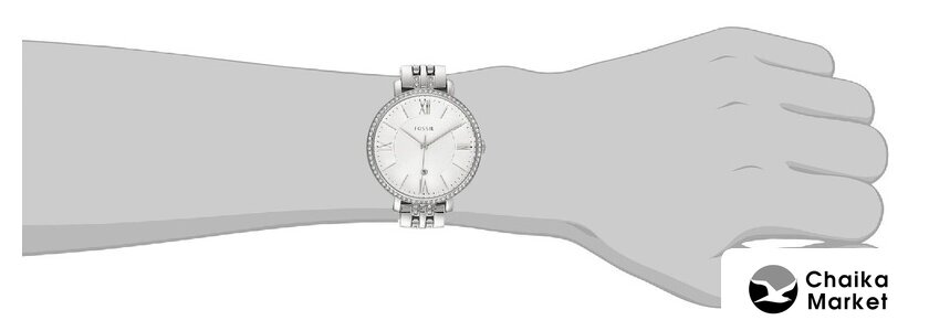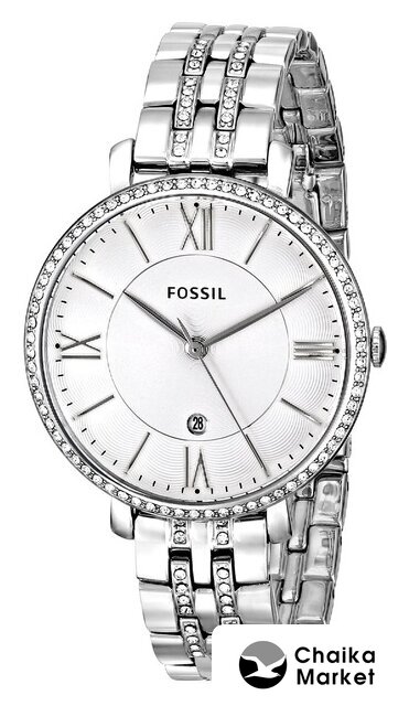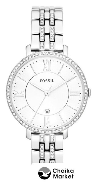 серебристый корпус, белый циферблат, серебристый браслет, металлический ремешок