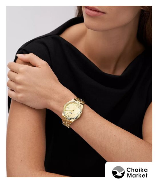 женские, механизм кварцевый, корпус: нержавеющая сталь, 38 мм, минеральное стекло, 50 м, браслет металлический