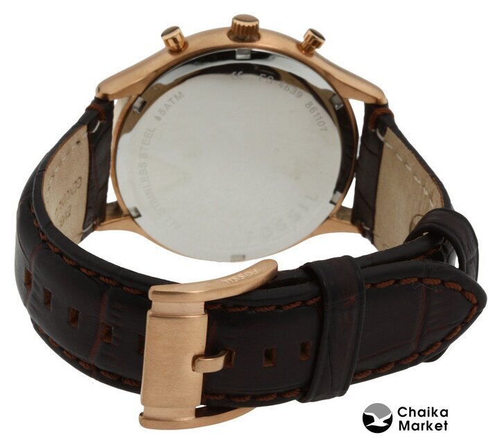 механизм кварцевый, корпус: нержавеющая сталь, 44 мм, минеральное стекло, 50 м, браслет кожаный