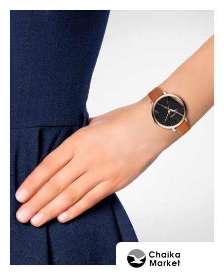 женские, механизм кварцевый, корпус: нержавеющая сталь, 34 мм, минеральное стекло, 30 м, браслет кожаный