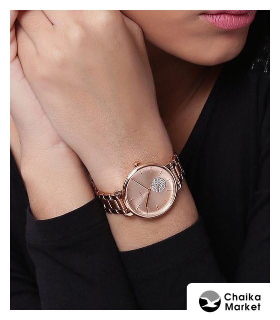 женские, механизм кварцевый, корпус: нержавеющая сталь, 36 мм, минеральное стекло, 50 м, браслет металлический
