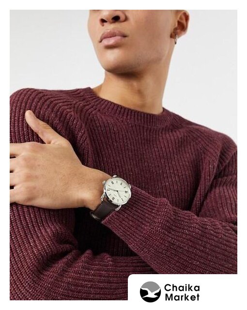механизм кварцевый, корпус: сталь с покрытием, 44 мм, минеральное стекло, 50 м, браслет кожаный