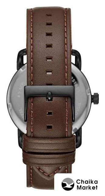 серебристый корпус, синий циферблат, коричневый браслет, кожаный ремешок
