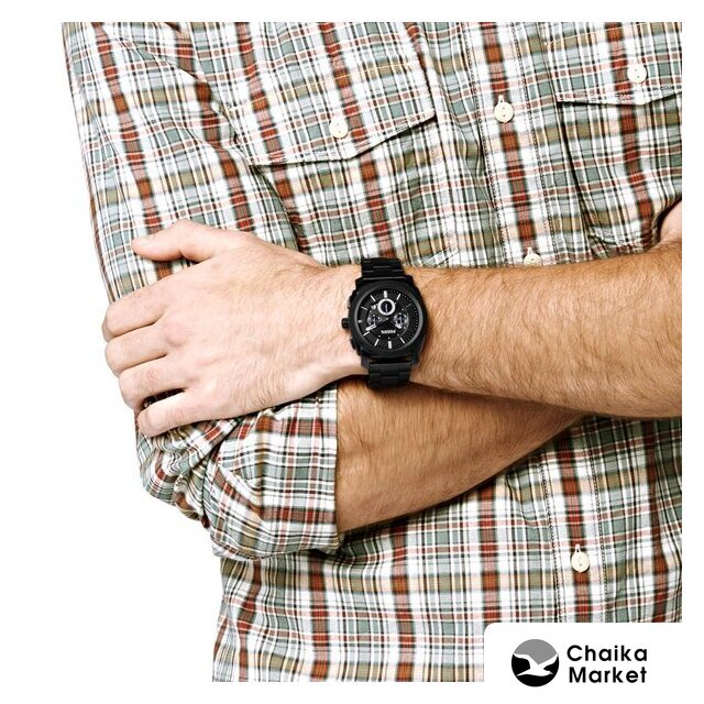 механизм кварцевый, корпус: сталь с покрытием, 51 мм, минеральное стекло, 100 м, браслет металлический