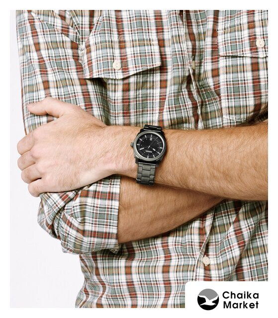 механизм кварцевый, корпус: сталь с покрытием, 42 мм, минеральное стекло, 50 м, браслет металлический