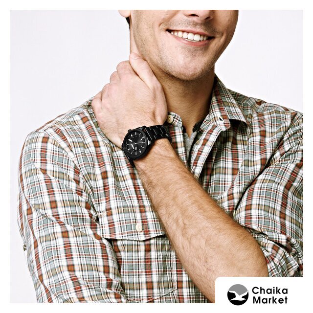 механизм кварцевый, корпус: сталь с покрытием, 42 мм, минеральное стекло, 50 м, браслет металлический