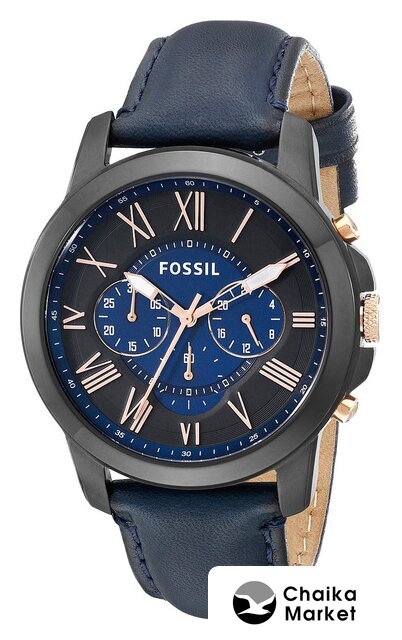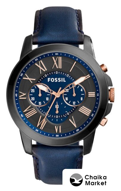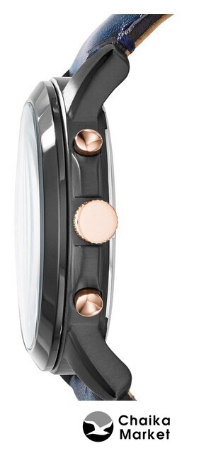 золотистый корпус, синий циферблат, синий браслет, кожаный ремешок