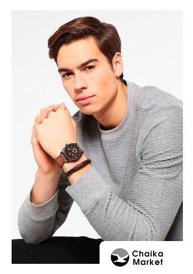 мужские, механизм кварцевый, корпус: нержавеющая сталь, 42 мм, минеральное стекло, 50 м, браслет кожаный