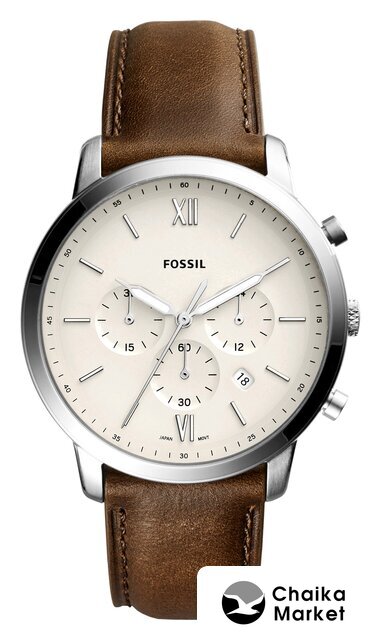 серый корпус, серый циферблат, коричневый браслет, кожаный ремешок