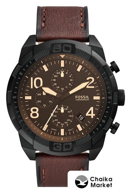 механизм кварцевый, корпус: сталь с покрытием, 44 мм, минеральное стекло, 50 м, браслет кожаный