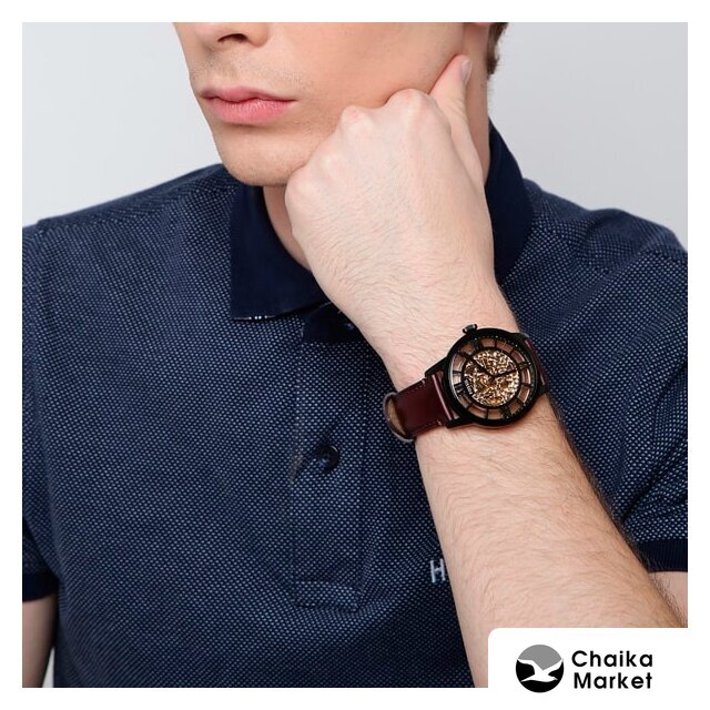 мужские, механизм механический с ручным заводом, корпус: нержавеющая сталь, 42 мм, минеральное стекло, браслет кожаный