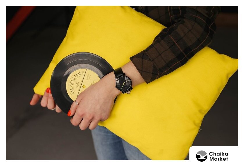серебристый корпус, черный циферблат, серебристый браслет, миланский ремешок