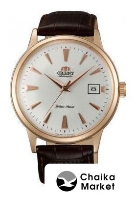 серебристый корпус, бежевый циферблат, коричневый браслет, кожаный ремешок