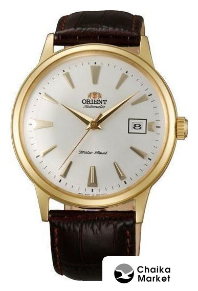 серебристый корпус, бежевый циферблат, коричневый браслет, кожаный ремешок