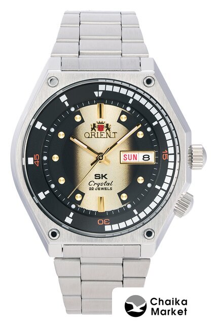серебристый корпус, синий/черный циферблат, серебристый браслет, металлический ремешок