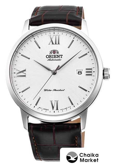 серебристый корпус, черный циферблат, черный браслет, кожаный ремешок