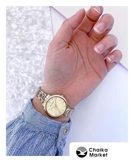 женские, механизм кварцевый, корпус: нержавеющая сталь, 38 мм, минеральное стекло, 50 м, браслет металлический