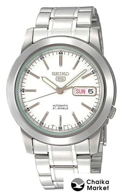 серебристый корпус, белый циферблат, серебристый браслет, металлический ремешок