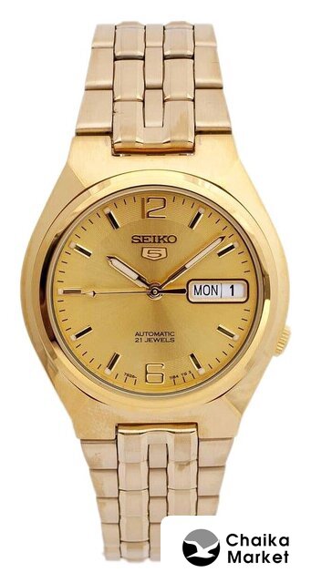 серебристый корпус, золотистый циферблат, серебристый браслет, металлический ремешок