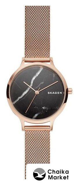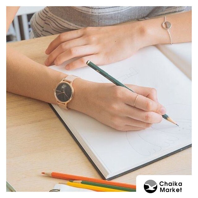 золотистый корпус, перламутровый/черный циферблат, черный браслет, кожаный ремешок