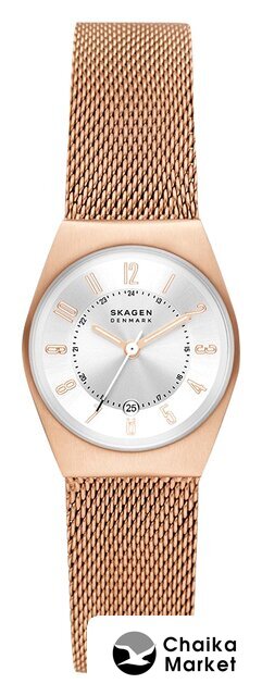 розовое золото корпус, белый циферблат, серебристый браслет, миланский ремешок