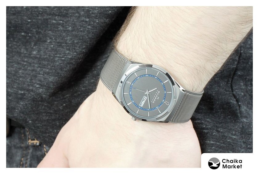 механизм кварцевый, корпус: нержавеющая сталь, 42 мм, минеральное стекло, 50 м, браслет металлический