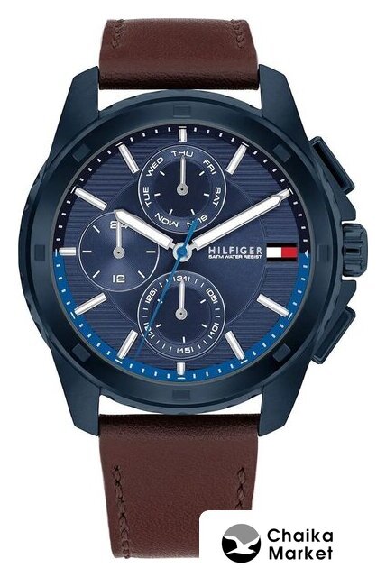 мужские, механизм кварцевый, корпус: нержавеющая сталь, 44 мм, минеральное стекло, 50 м, браслет кожаный