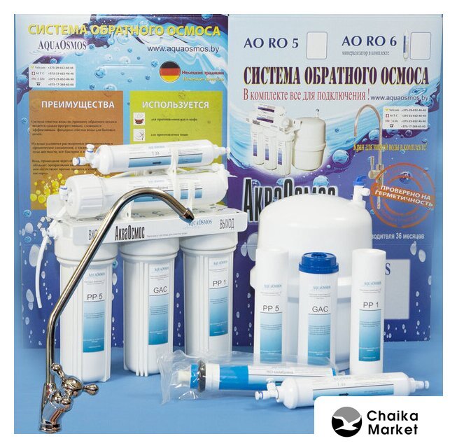 система обратного осмоса, производительность: 0.14 л/мин, количество картриджей: 5