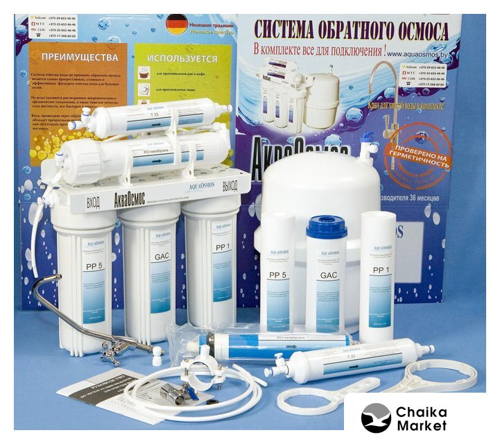 система обратного осмоса, производительность: 0.14 л/мин, количество ступеней очистки: 6