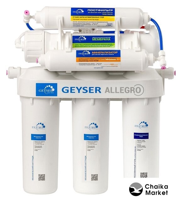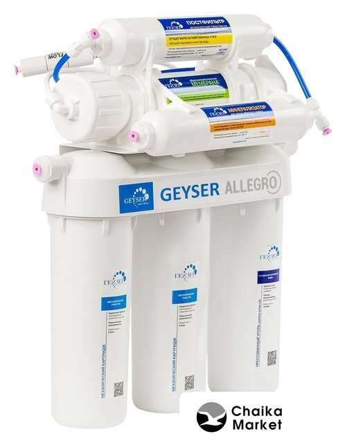 Описание фильтра | Система обратного осмоса устраняет соли жесткости, тяжелые металлы, механические примеси, хлор и органические соединения, фенолы, бактерии и вирусы. Для установки в напорной сети колбы имеют двойное уплотнение. Корпус выдерживает давление в 25 атмосфер и не менее 100 тысяч циклов гидроудара. Предусмотрен специальный клапан сброса воды в дренаж при сверхнормативном давления в гидроаккумуляторе.Для продления срока службы мембраны и удаления примесей на ранней стадии фильтрации используется трехступенчатая предочистка. Пара полипропиленовых модулей отфильтровывает песок, окалину и взвешенные частицы крупностью от 5 микрон. Картридж карбон-блок (CBC) из кокосового активированного угля поглощает органику, фенолы, остаточный хлор.Во избежание появления посторонних запахов и привкуса в системе предусмотрен постфильтр из кокосового активированного угля.Система оснащена дополнительным блоком минерализации. Для обогащения магнием, кальцием, а также необходимыми микроэлементами в оптимальной для организма концентрации используются природный магнетит и кальцит из экологически безопасных месторождений. |
