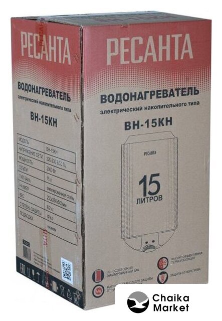 15 л, 2 кВт, время нагрева 28 мин