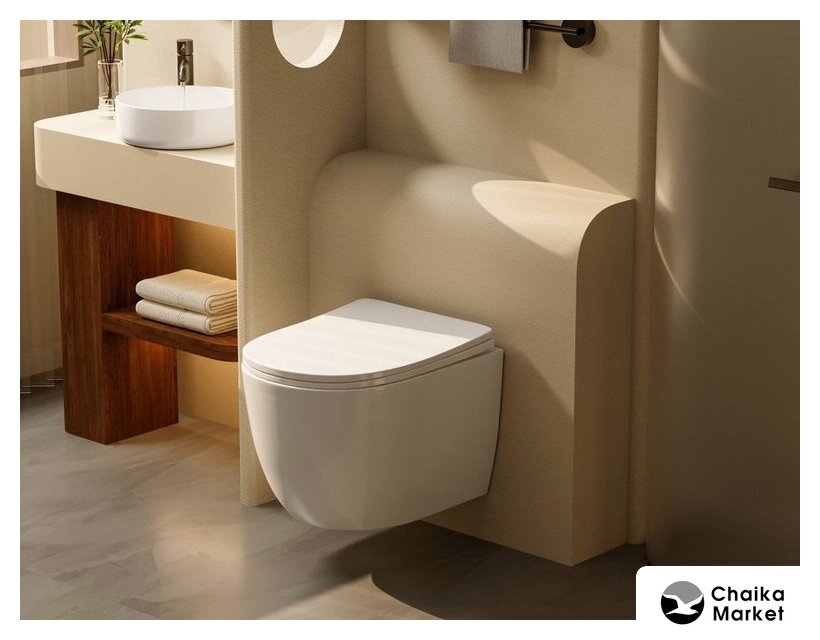 подвесной, конструкция: компакт, задний подвод воды, горизонтальный выпуск, однорежимный слив, с сиденьем, безободковый