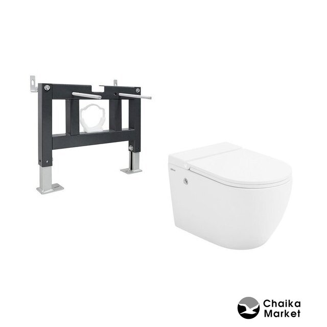 подвесной, конструкция: без бачка, задний подвод воды, горизонтальный выпуск, двухрежимный слив, с сиденьем, безободковый