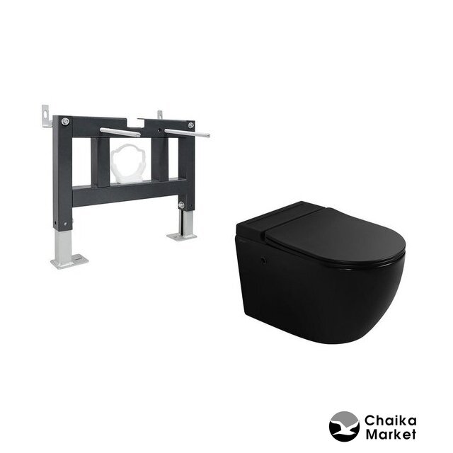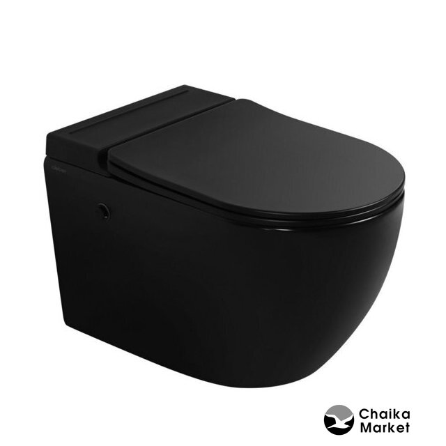 подвесной, конструкция: компакт, задний подвод воды, горизонтальный выпуск, однорежимный слив, с сиденьем, безободковый