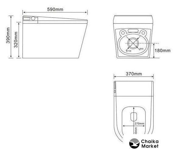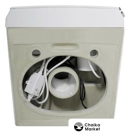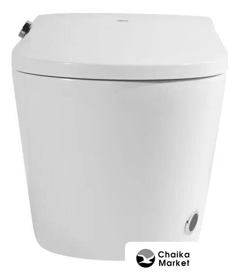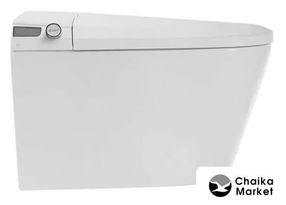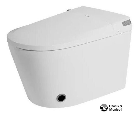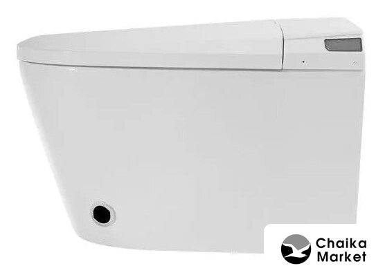 умный (электронный) унитаз, приставной (с биде), конструкция: без бачка, нижний подвод воды, горизонтальный выпуск, однорежимный слив, с сиденьем
