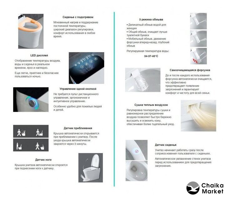 | Дополнительные функции | подогрев сиденья, регулировка температуры воды |