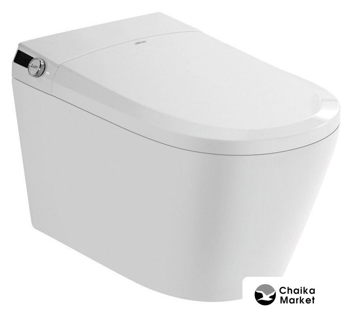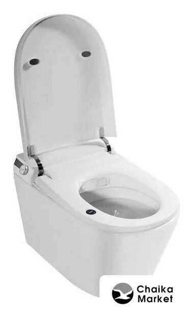умный (электронный) унитаз, подвесной (с биде), конструкция: без бачка, задний подвод воды, горизонтальный выпуск, однорежимный слив, с сиденьем
