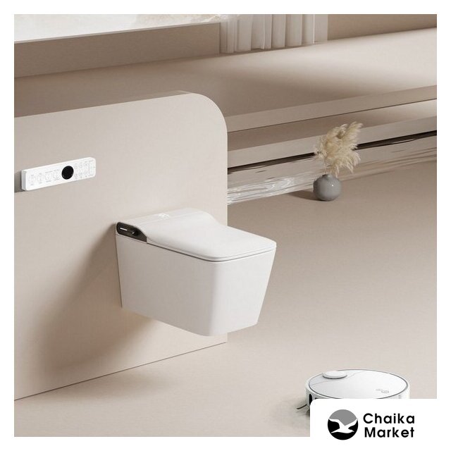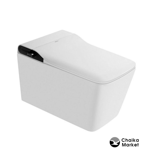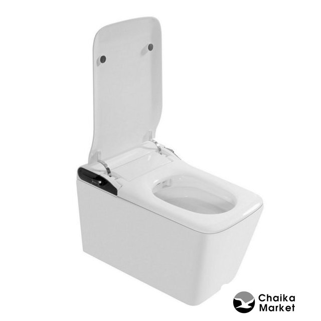 умный (электронный) унитаз, приставной (с биде), конструкция: без бачка, нижний подвод воды, горизонтальный выпуск, однорежимный слив, с сиденьем