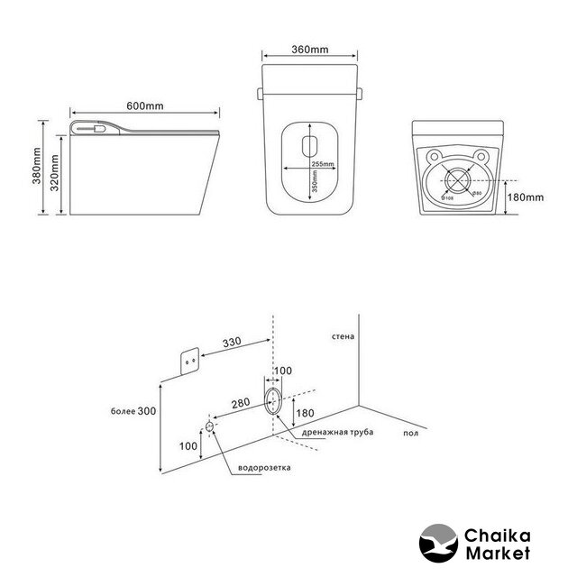 | Дополнительные функции | подогрев воды, регулировка температуры сиденья |