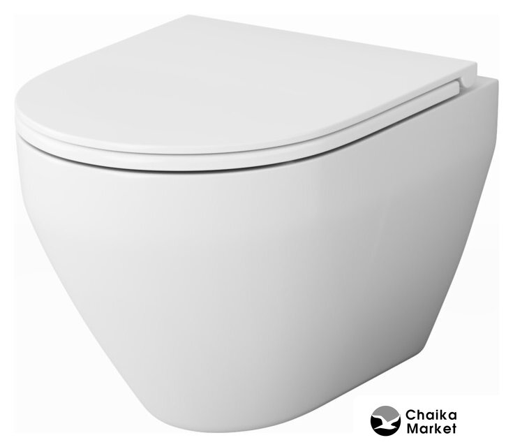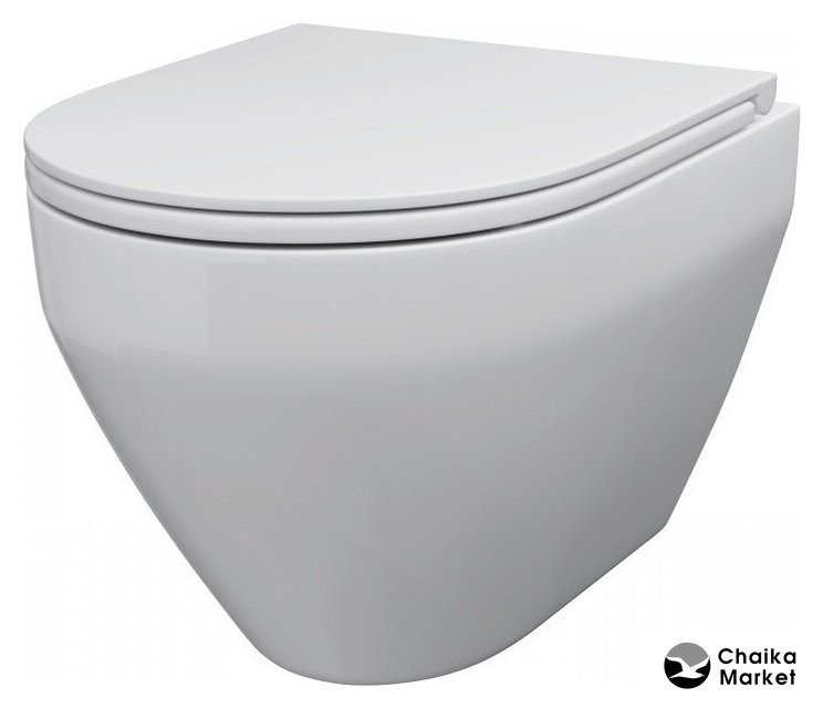 подвесной, конструкция: без бачка, задний подвод воды, горизонтальный выпуск, двухрежимный слив, с сиденьем, безободковый