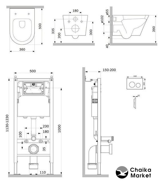 подвесной, конструкция: компакт, задний подвод воды, универсальный выпуск, двухрежимный слив, с сиденьем, безободковый