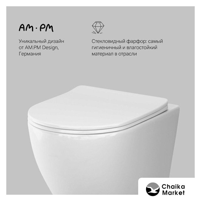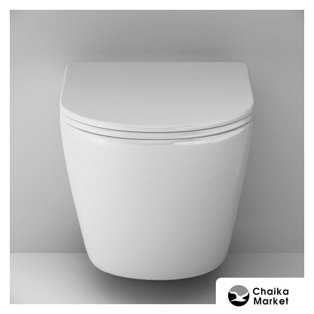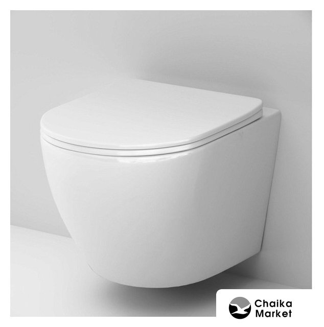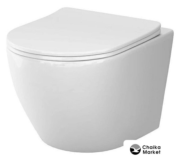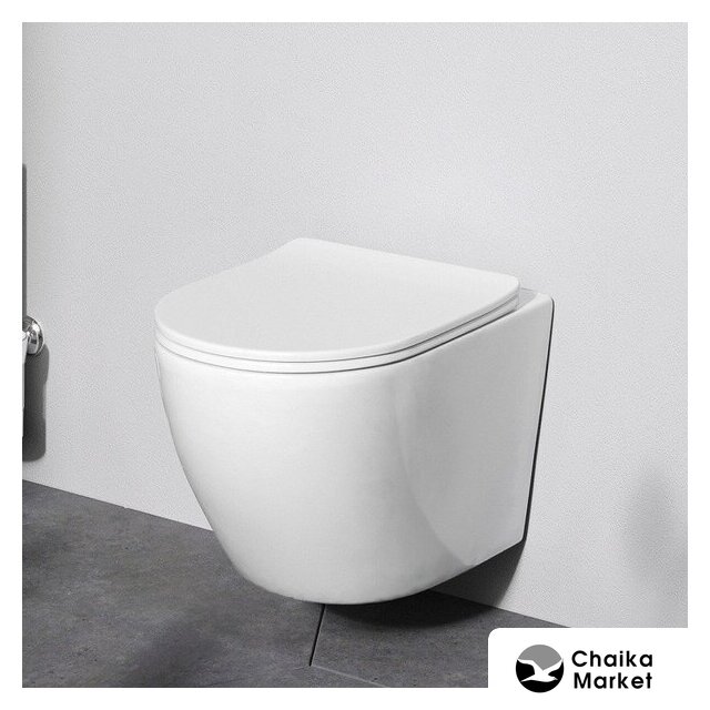 подвесной, конструкция: без бачка, задний подвод воды, горизонтальный выпуск, однорежимный слив, с сиденьем, безободковый