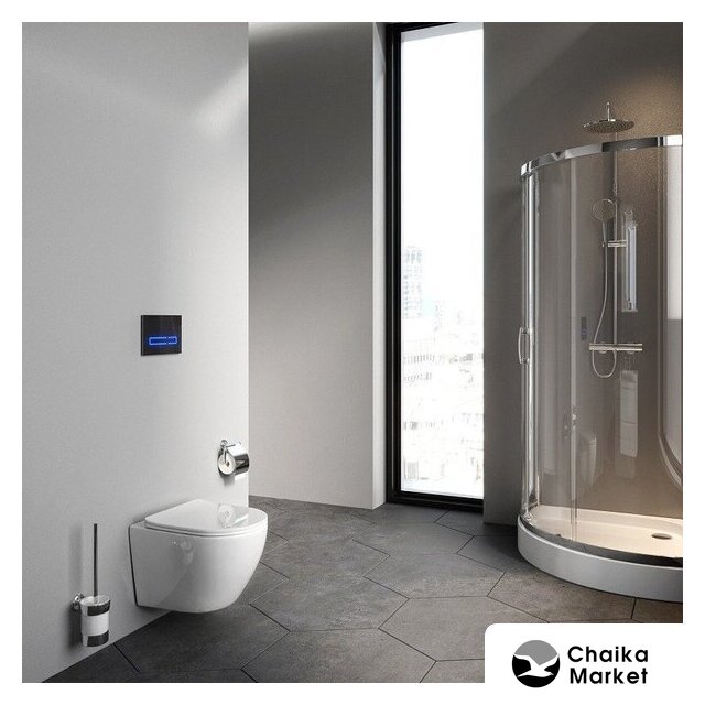 подвесной, конструкция: компакт, задний подвод воды, горизонтальный выпуск, двухрежимный слив, с сиденьем, безободковый