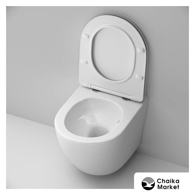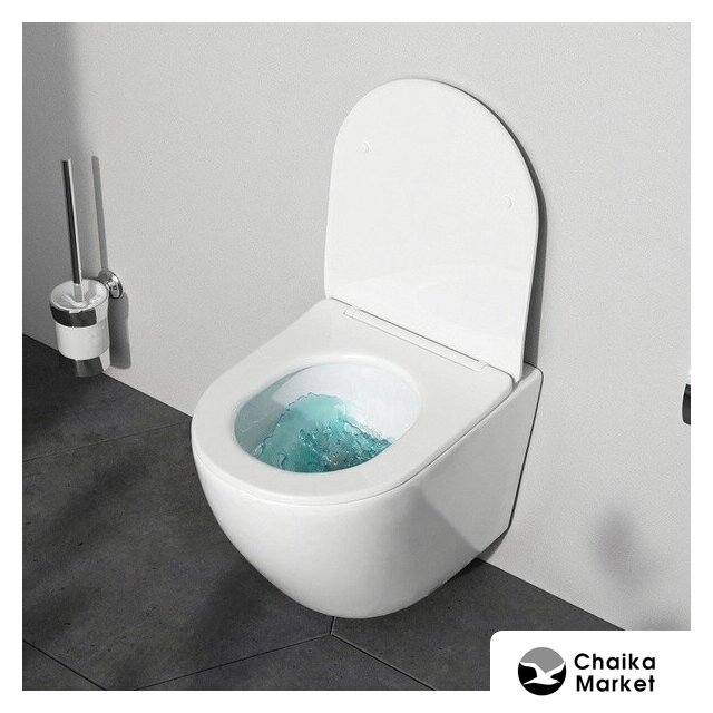 подвесной, конструкция: без бачка, задний подвод воды, горизонтальный выпуск, двухрежимный слив, с сиденьем, безободковый