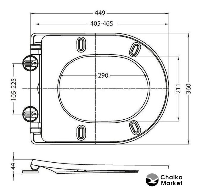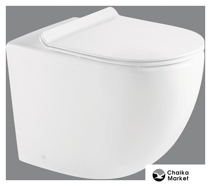 приставной, конструкция: без бачка, задний подвод воды, горизонтальный выпуск, двухрежимный слив, с сиденьем, безободковый