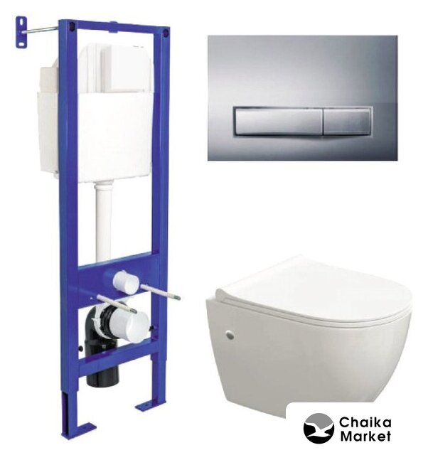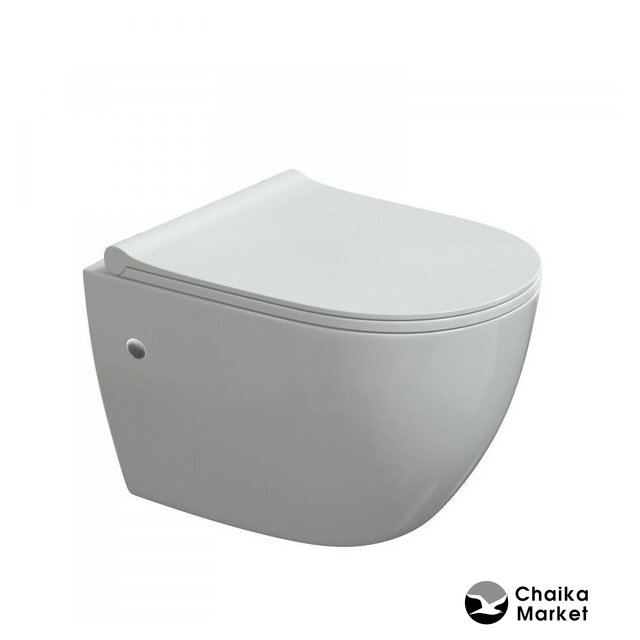 подвесной, конструкция: без бачка, задний подвод воды, горизонтальный выпуск, двухрежимный слив, с сиденьем, безободковый