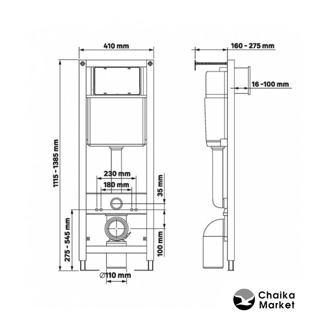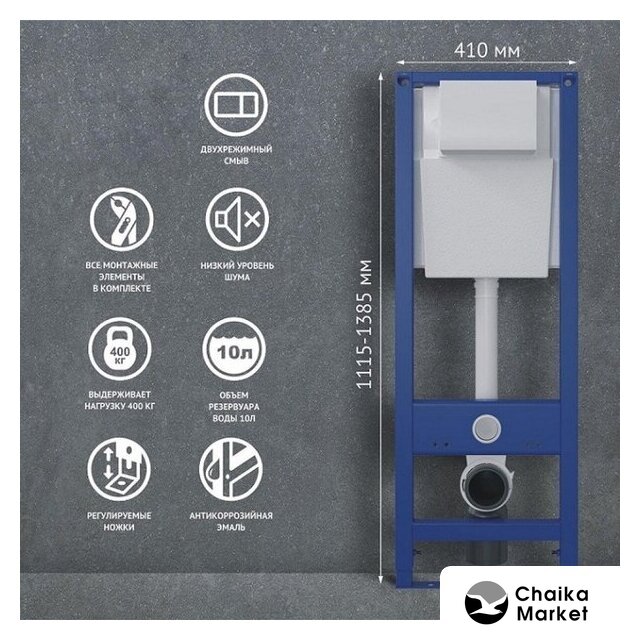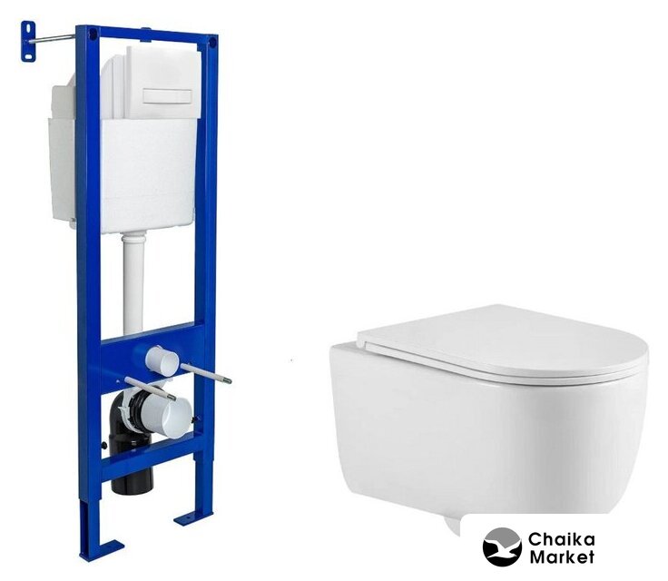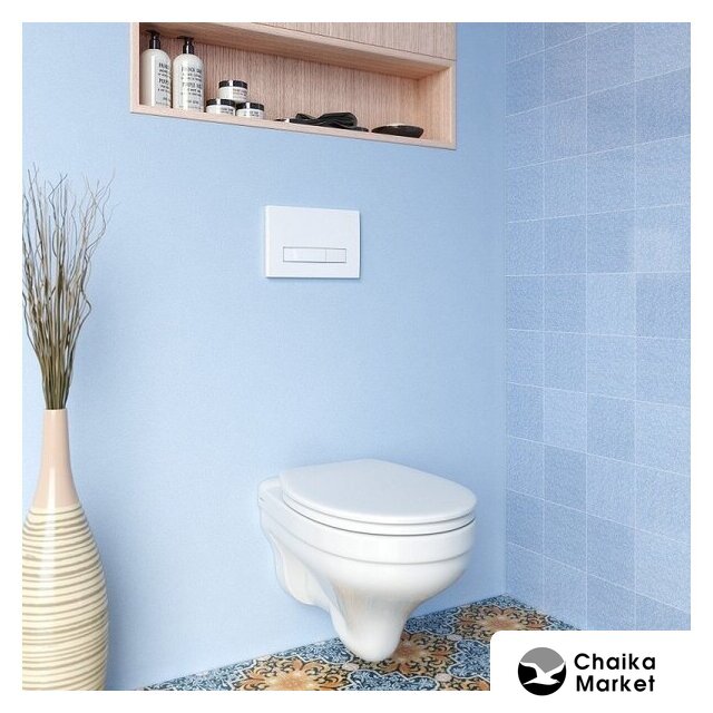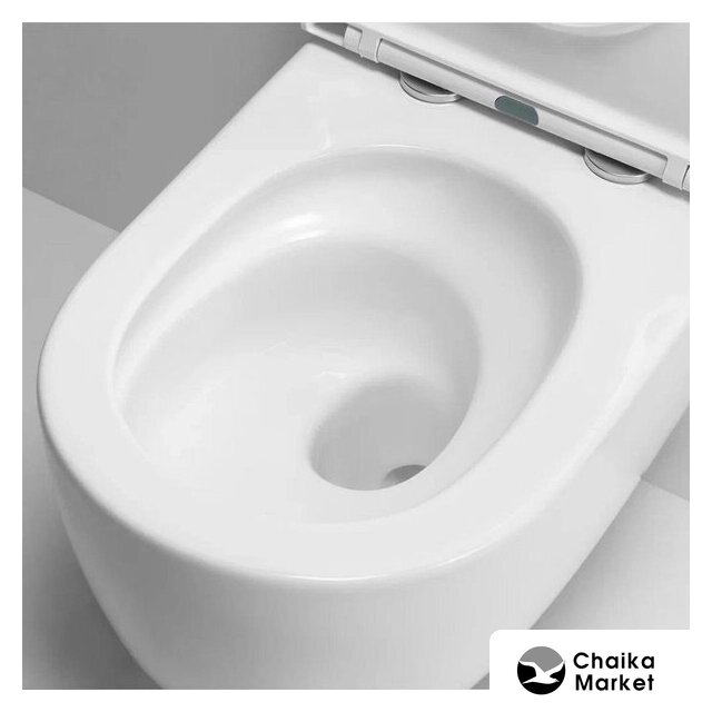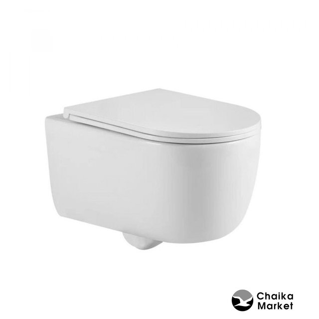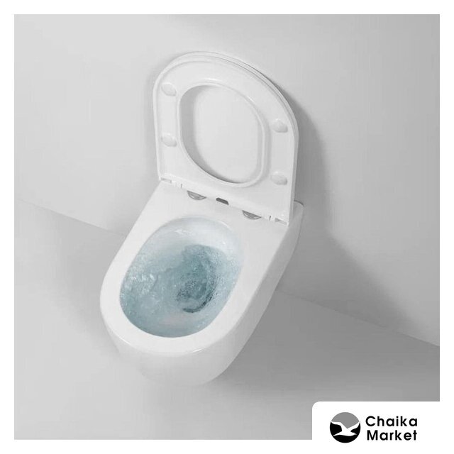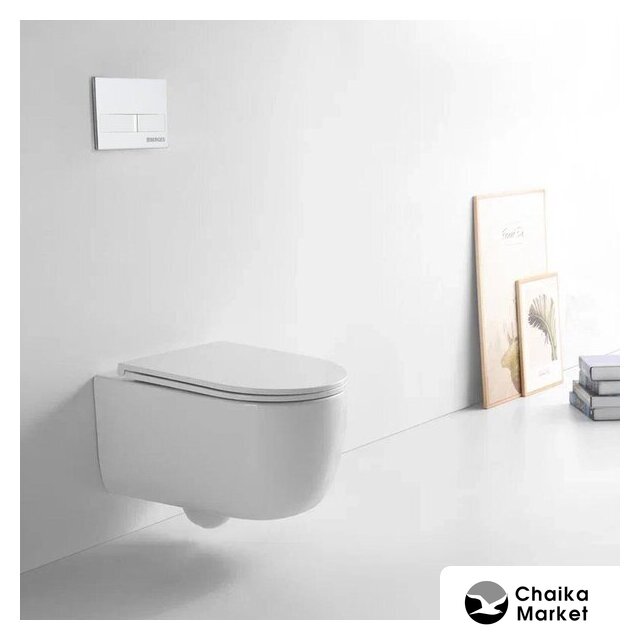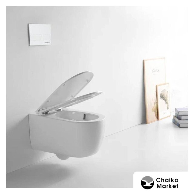 подвесной, конструкция: без бачка, задний подвод воды, горизонтальный выпуск, двухрежимный слив, с сиденьем, безободковый