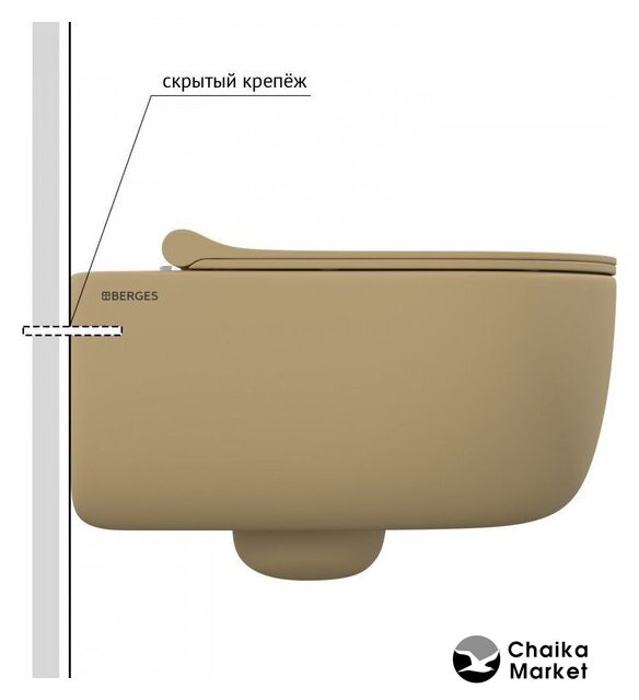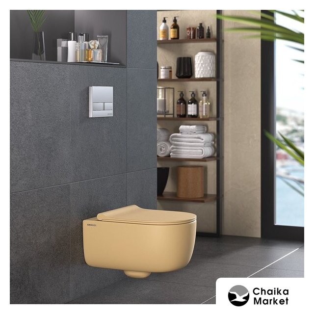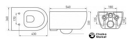 подвесной, конструкция: без бачка, задний подвод воды, горизонтальный выпуск, двухрежимный слив, с сиденьем, безободковый