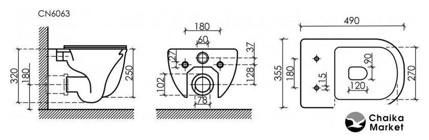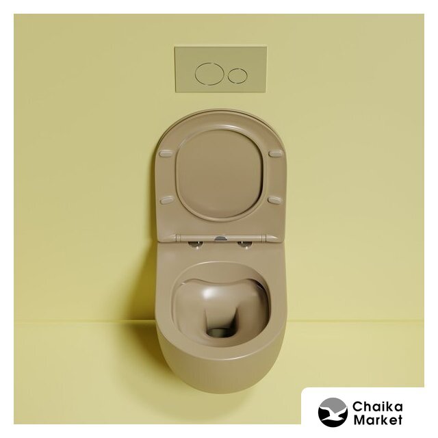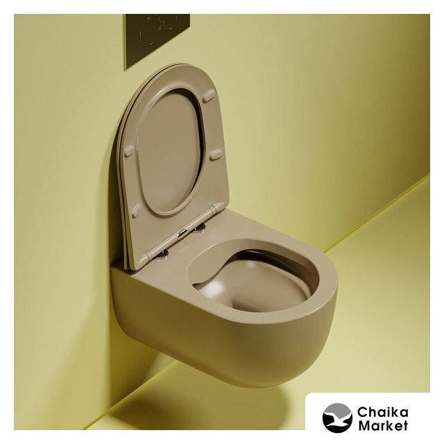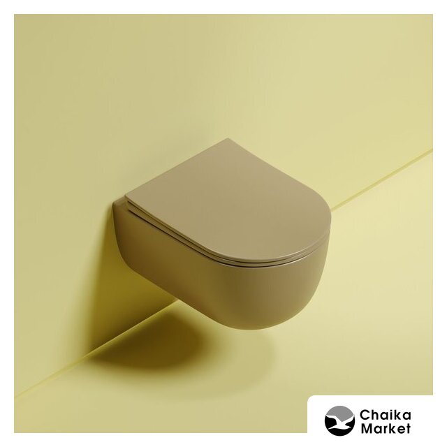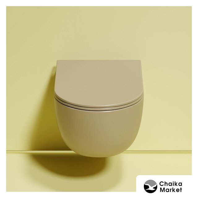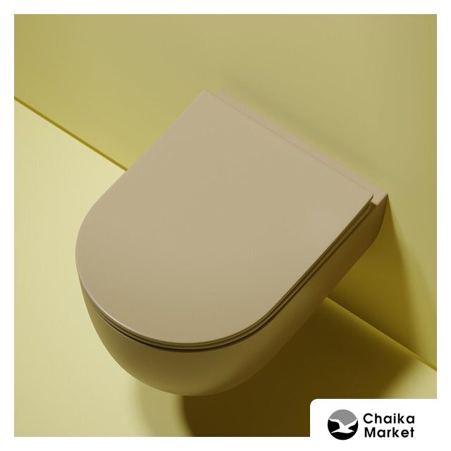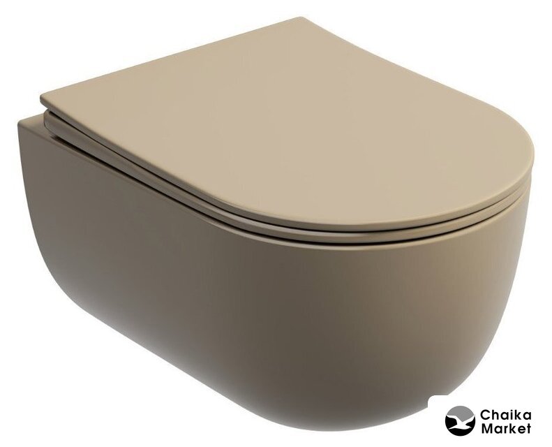 подвесной, конструкция: без бачка, задний подвод воды, горизонтальный выпуск, двухрежимный слив, с сиденьем, безободковый