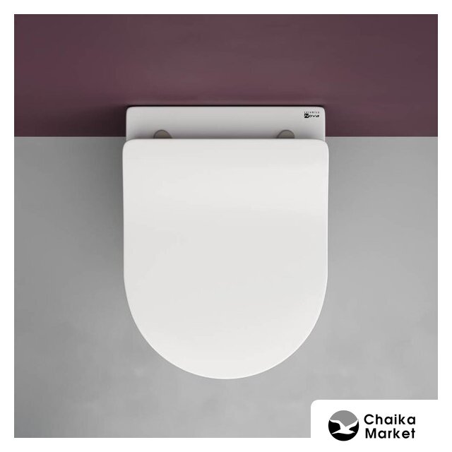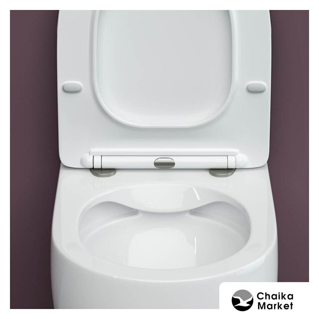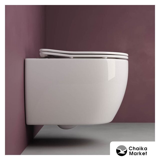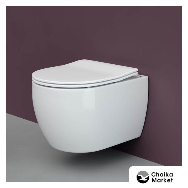 подвесной, конструкция: без бачка, задний подвод воды, горизонтальный выпуск, двухрежимный слив, с сиденьем, безободковый